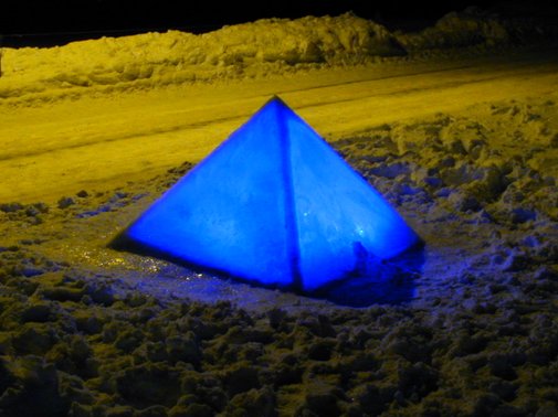 Is og sne er fantastiske byggematerialer. Når det er koldt nok, vel at mærke. 4 stk. 10 cm tykke trekanter, frosset i form.